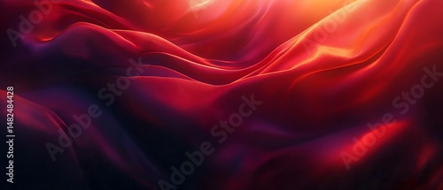 © Pumapala, Obraz premium Red silk fabric waves, dark background