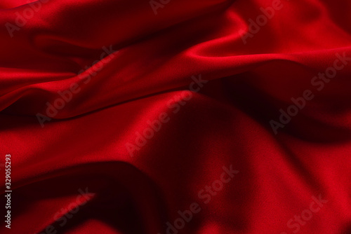 © Nikolay, Obraz premium Red silk or satin luxury fabric texture can use as abstract background.