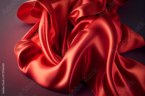 Obraz premium Red silk satin fabric. Generative AI