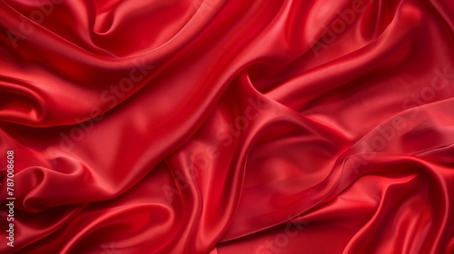 Obraz premium Red silky fabric. Abstract background. Realistic textile featuring folds and drapes. Decorative element for design