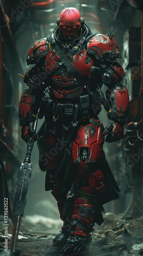 © Nat, Fototapeta premium red skinned ogre cyborgs inside a futra lair red colors high resolution ultra detailed hyper realistic