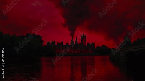© Sum, Obraz premium Red sky over Palace of Westminster.