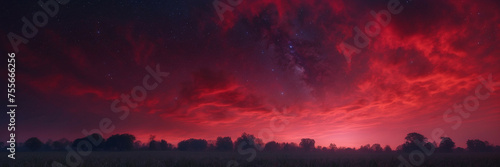 Obraz premium Red Sky With Clouds and Trees