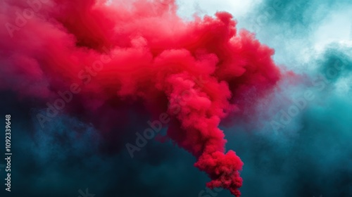 © San, Naklejka premium Red Smoke Plumes Against a Blue Sky