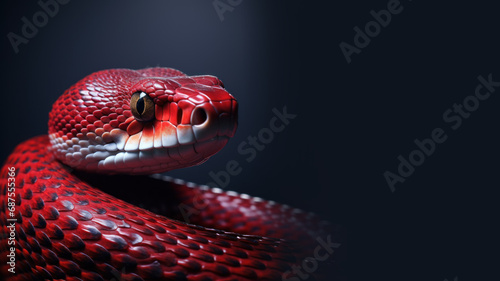 Fototapeta premium Red snake in alert position isolated on gray background