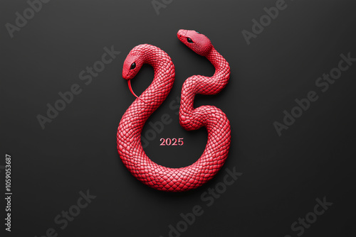 Fototapeta premium red snake with 2 heads with number 2025 on a black background