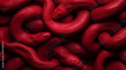 Fototapeta premium Red snakes intertwining in a vibrant display of color and texture, showcasing...