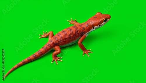 Naklejka premium Red Speckled Gecko Isolated on Vivid Green Screen Background Perfect for...
