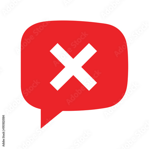 © CreativeDH, Fototapeta premium Red speech bubble with cross icon, flat design, web button