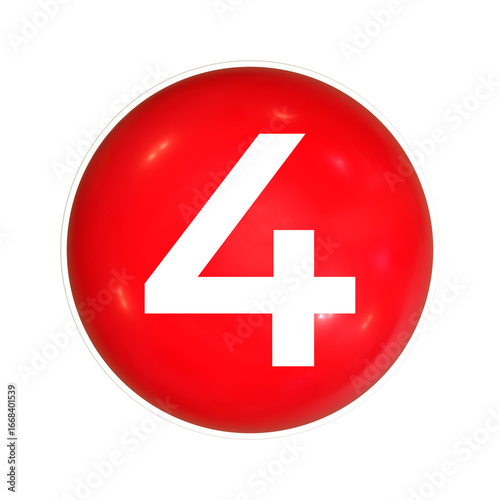 © Graphicyano8, Obraz premium Red Sphere Or Button With Number 4