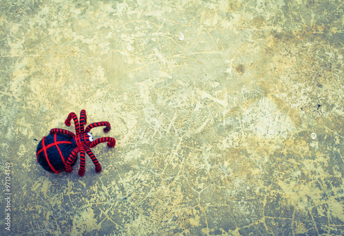 Naklejka premium Red spider on abstract pattern cement floor background
