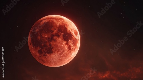© Botboy, Fototapeta premium Red spooky moon isolated on dark background