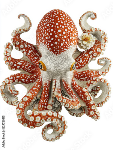 Obraz premium Red-spotted octopus, detailed sculpture, intricate tentacles.