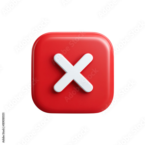 Obraz premium Red square button with white cross mark icon for error cancel transparent background
