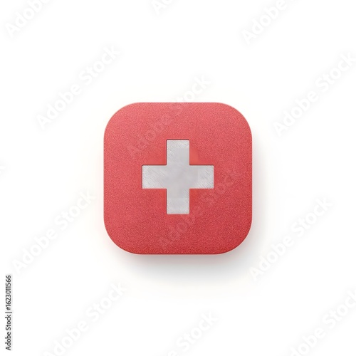 © Deep Dream Studio, Obraz premium Red square emblem with a white cross on a white background