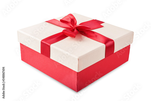 © nata_vkusidey, Obraz premium Red square gift box with a bow on a white isolated background