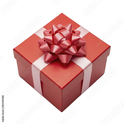 © Dari, Fototapeta premium Red square gift box with shiny pink ribbon and bow on a transparent background PNG image
