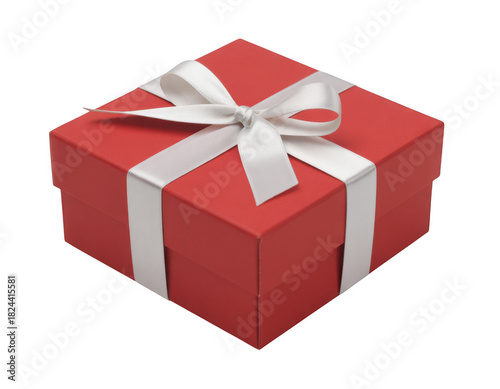 © ruhu, Obraz premium Red square gift box with white satin ribbon bow isolated on a transparent background