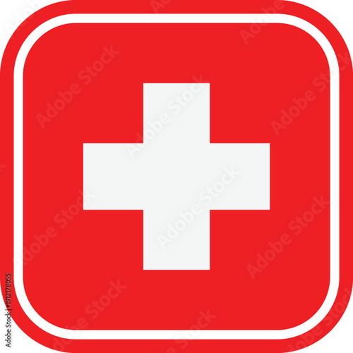© Sumi, Obraz premium Red square with white cross and rounded corners symbol healthcare