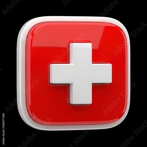© png stock, Obraz premium Red square with white cross isolated on white background