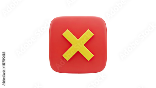 Obraz premium Red square with yellow X mark symbol on transparent background