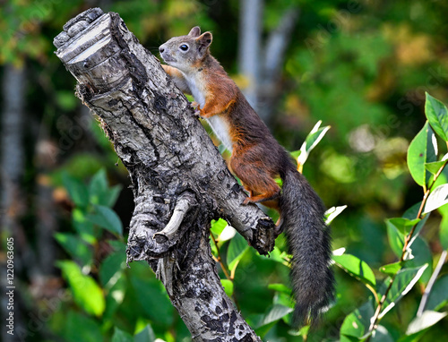 Obraz premium Red squirrel climb upwards