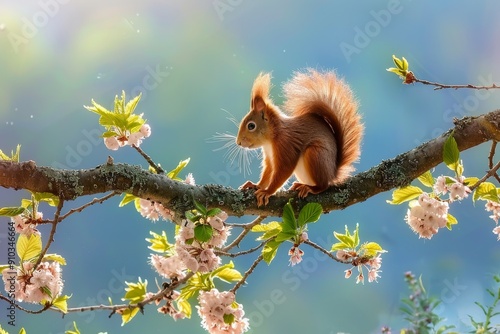 © ArtSpree, Fototapeta premium Red squirrel close-up. Beautiful simple AI generated image in 4K, unique.