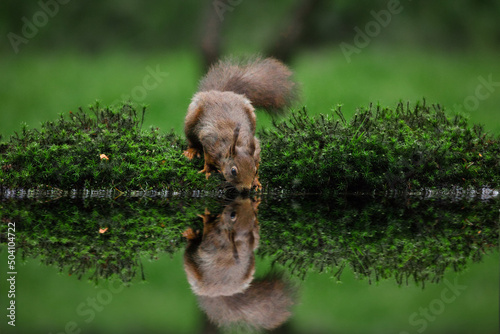 © Gerben, Obraz premium red squirrel drinking