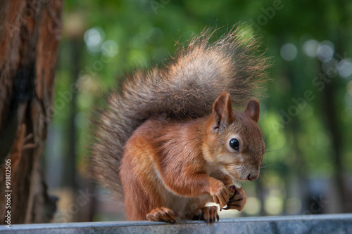 © OlVic, Fototapeta premium Red Squirrel Eating a Walnut. Close Up.