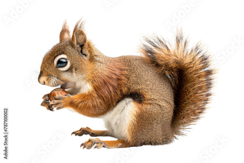 © Jeerawut, Fototapeta premium red squirrel eating food .isolated on white background
