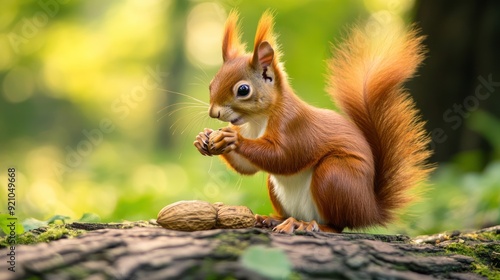 © Muhbahrir ghozali, Obraz premium Red Squirrel Eating Nut in Forest