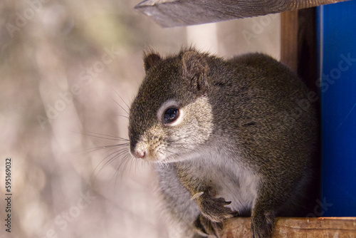 Obraz premium Red Squirrel Having Lunch at a Bird Feeder