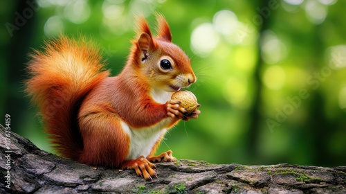 Obraz premium Red Squirrel Holding a Nut in a Forest