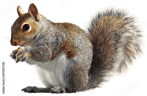 Obraz premium Red Squirrel Holding Nut Isolated on White Background