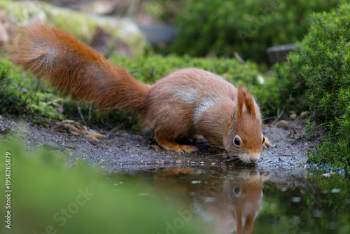 © Menno Schaefer, Fototapeta premium Red Squirrel in a forest a cute little rodent.