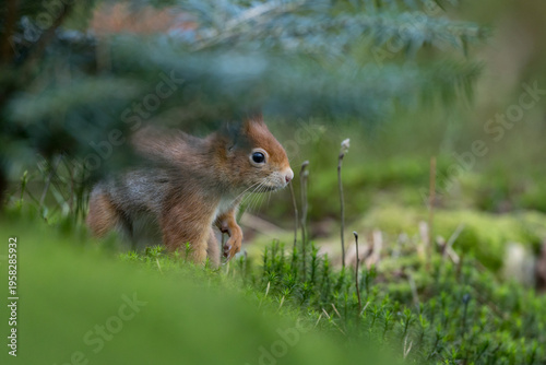 © Menno Schaefer, Fototapeta premium Red Squirrel in a forest a cute little rodent.