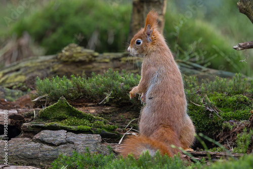 Fototapeta premium Red Squirrel in a forest a cute little rodent.