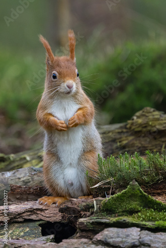 Fototapeta premium Red Squirrel in a forest a cute little rodent.