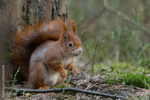 © Menno Schaefer, Fototapeta premium Red Squirrel in a forest a cute little rodent.