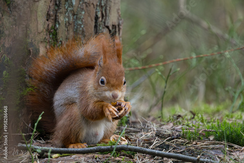 Fototapeta premium Red Squirrel in a forest a cute little rodent.
