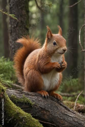 © DavidMohn, Fototapeta premium Red Squirrel in a Forest Setting