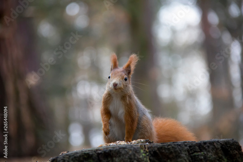 Obraz premium Red squirrel in forest. Sciurus vulgaris. Czech Republic.