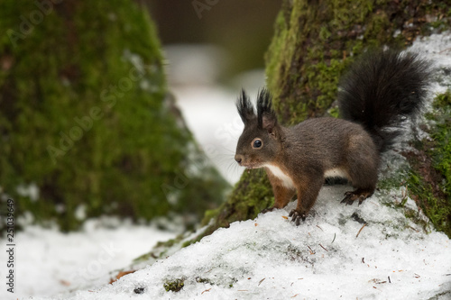© D. Jakli, Fototapeta premium red squirrel in front of a tree