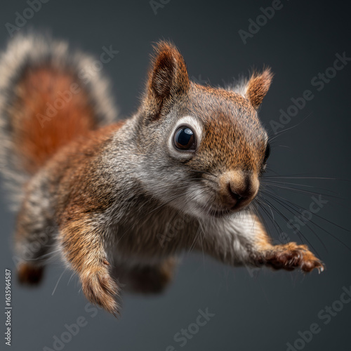 © tossi66, Obraz premium Red squirrel in midair, close-up view
