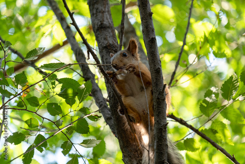© Сергей Дудиков, Fototapeta premium Red squirrel in the forest.