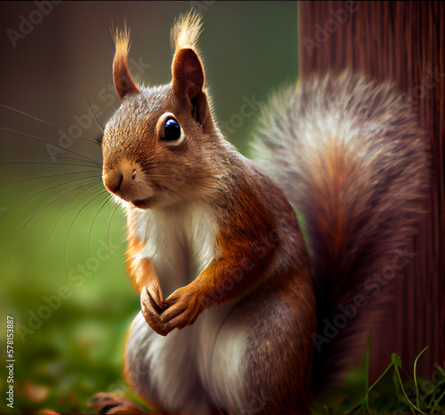 Fototapeta premium Red Squirrel in the forest , isolated on a background Created using generative AI tools