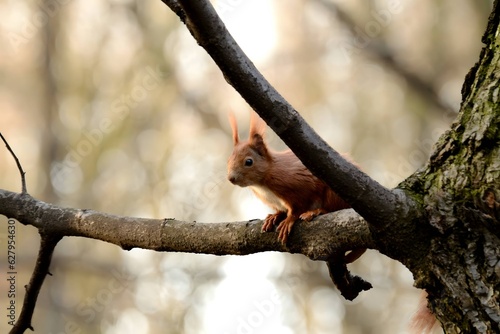 Fototapeta premium Red squirrel on a tree.