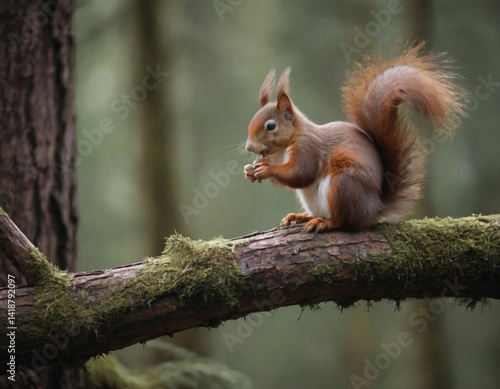 © Mason, Obraz premium red squirrel on a tree branch in the forest
