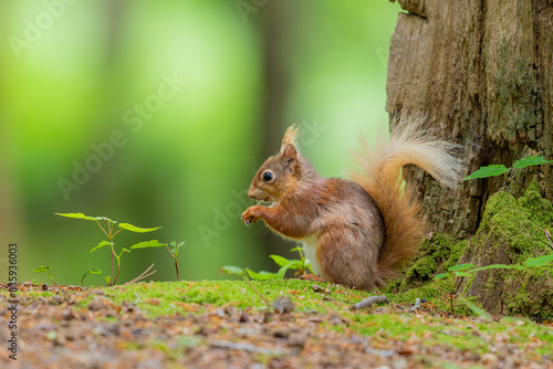 Fototapeta premium Red squirrel on forest floor