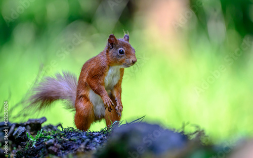 Obraz premium Red squirrel on its hind legs